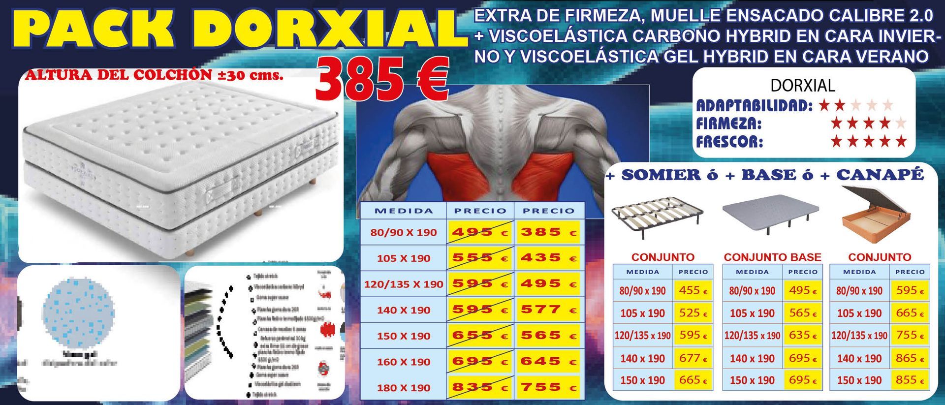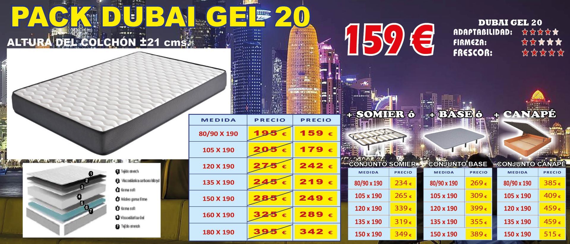 Tampoco vamos a decir que somos pioneros en el Sector Descanso. Lo que sí podemos decir, ALTO Y CLARO, es que tenemos los PRECIOS MÁS ATRACTIVOS y COMPETITIVOS del mercado, tanto en gama alta, como en gama standar de colchones, adaptándonos a todos los bolsillos y, en muchas ocasiones, negociando el precio de venta final, con grandes descuentos u obsequiando almohadas viscoelásticas o fundas de colchón para su nuevo equipo de descanso... Compruebelo.