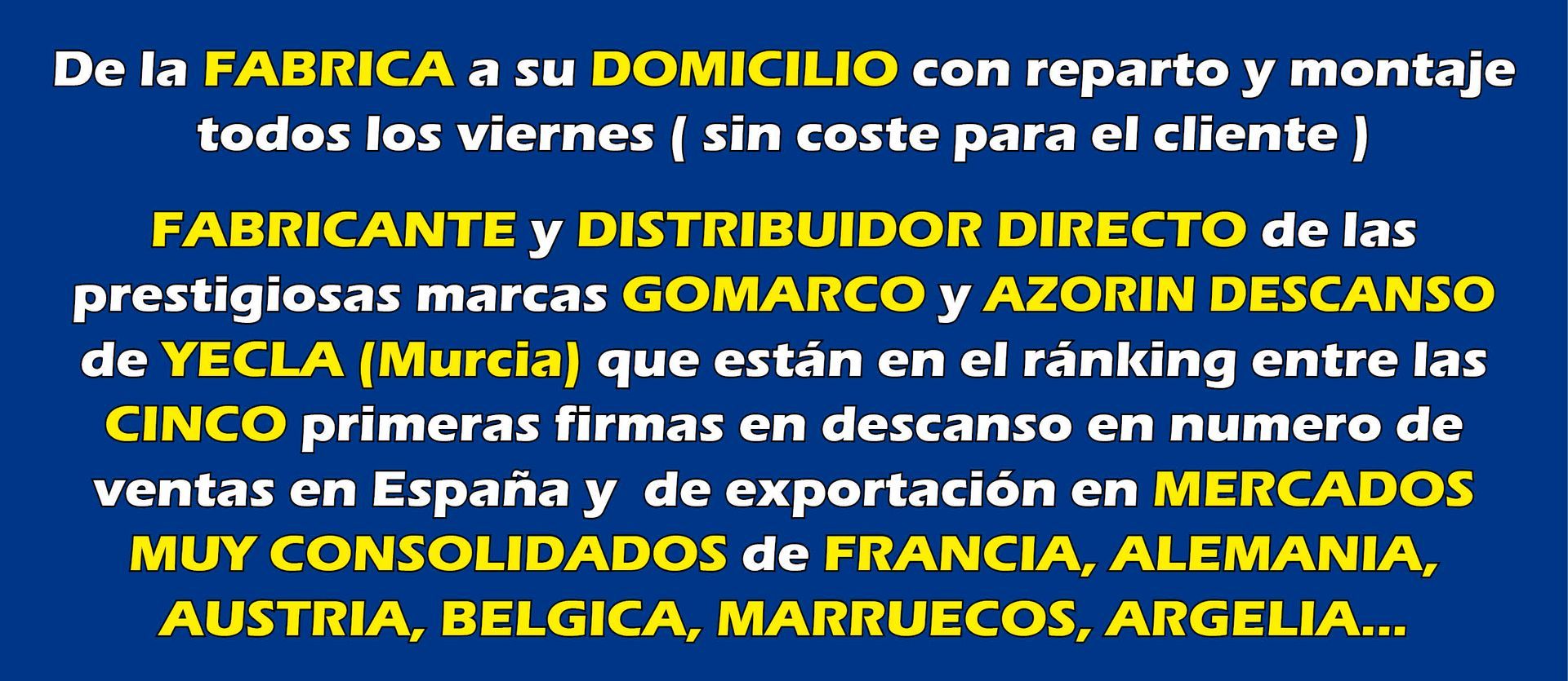 se creó en el año 2002 y somos Fabricantes y Distribuidores oficiales de las marcas GOMARCO, MATERASSO, AZORÍN...